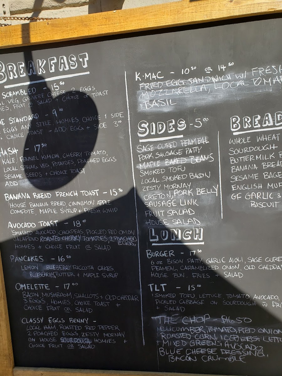 House smoked salmon, fried eggs, capers, pickled onions, garlic and herb cream cheese, pea shoots, homefries and salad