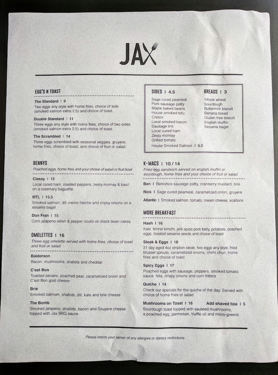 Welcome to Jax Ottawa, a cozy brunch haven nestled at 479 Bronson Ave. Known for its vibrant atmosphere and commitment to delightful culinary experiences, Jax Ottawa offers a menu that is both thoughtful and mouthwateringly delicious.